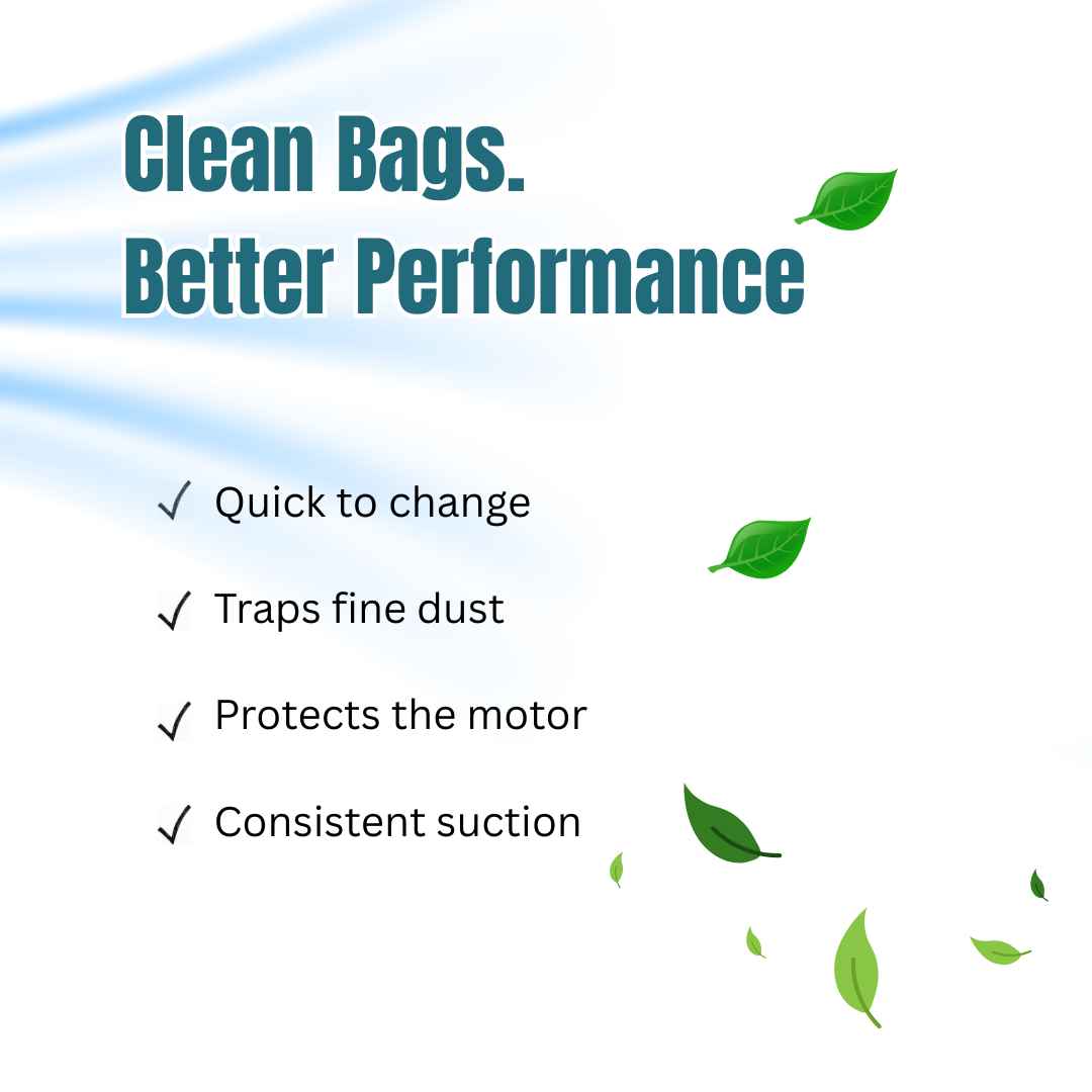 Includes: Replacement vacuum bags + exhaust filters (included in every pack)